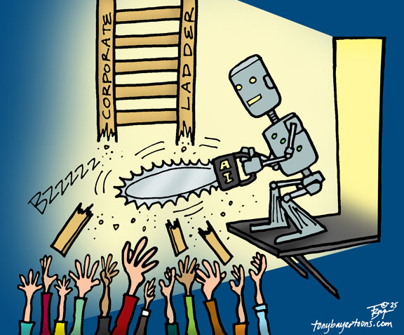 Unemployment is surging in many sectors of the economy due to companies integrating artificial intelligence, eliminating mostly entry level white collar positions in the tech industry and customer service. This begs the question: will there be any experienced and qualified individuals left to fill vacated upper management positions in the future, or will new leaders be essentially ignorant and unqualified, because they were never given adequate knowledge and experience on the job?