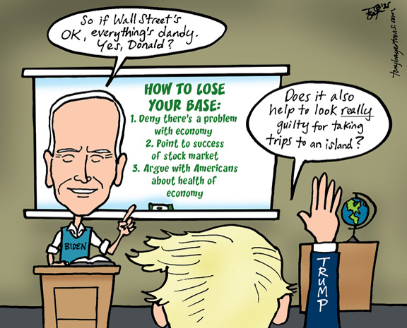 Many are struggling financially amidst inflation and job losses, and like his predecessor Joe Biden, President Trump has been arguing with the American people that the economy is actually doing fine. Failing to acknowledge economic reality by pointing to gains on Wall Street doesn't resonate well, as the 2024 election proved for Biden. Job losses prop up the stock market at the moment as investors reward companies laying off workers to increase profits: your pain is their temporary gain.